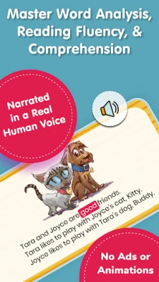 Kujifunza kusoma hakujawahi kufurahisha hivi! Ndani ya Programu ya 3rd Grade Reading App, tunatoa michezo shirikishi iliyobuniwa mahususi kuimarisha stadi muhimu za kusoma na kuandika. Kutoka changamoto za uelewa wa masomo hadi mafumbo ya msamiati, kila shughuli humvutia mwanafunzi mdogo na kufanya elimu ihisi kama mchezo wa kufurahisha. Aidha, zana zetu za kufundisha foniki zimejumuishwa kwa ustadi ndani ya vitabu na michezo, zikisaidia watoto kutawala sauti za herufi, kutambua maneno, na kuboresha matamshi yao hatua kwa hatua. Kwa wale wanaopendelea kusikiliza, kuna vitabu vya kusikiliza (audiobooks) na vipengele vya kusoma kwa sauti, vinavyohakikisha kila mtoto anafaidika bila kujali mtindo wake wa kujifunza, iwe ni kwa kusoma mwenyewe au kusikiliza.