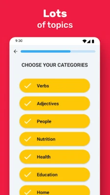 Learning English Dictionary inakuletea mfumo wa masomo wenye mpangilio na uliopangwa vizuri. Gundua maneno yaliyopangwa kulingana na mada 15 tofauti na viwango 3 vya ugumu, yakiwa yametafsiriwa katika lugha nane maarufu: Kihispania, Kifaransa, Kirusi, Kiarabu, Kihindi, Kituruki, Kiindonesia na Kivietnam. Mbali na hayo, mfumo mahiri wa 'Spaced Repetition' utakukumbusha maneno unayokaribia kusahau, ukihakikisha ujifunzaji wako unabaki thabiti na unaendelea. Fuatilia maendeleo yako na uone jinsi ujuzi wako unavyoimarika kila uchao kupitia mfumo wa kufuatilia maendeleo na alama za ujuzi.