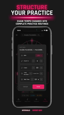 Kamilisha mazoezi yako ukitumia zana za hali ya juu kama vile "Mpangilio wa Mfuatano", unaokuwezesha kuunda mifuatano ya mdundo isiyo na kikomo. Unganisha mifuatano mingi kwa kutumia "Mpangilio wa Vipindi" ili kuunda utaratibu kamili wa mazoezi. Tazama midundo yako ikionyeshwa kama noti za muziki, na tumia "Hesabu ya Kuanzia" kwa maandalizi kabla ya kuanza. Na ili uhakikishe unafanya mazoezi popote, unaweza kuhamisha mifuatano yako kama faili za WAV. Chagua kutoka zaidi ya sauti 50 za kitaalamu—ngoma, mibofyo, vizuizi vya mbao—na ubinafsishe msisitizo wa mdundo na viwango vya sauti kwa kila sehemu. Metronome Lab inatumika na kuaminiwa na wanamuziki, walimu, na wanafunzi duniani kote, ikiwasaidia kuboresha ustadi wao wa kimuziki.