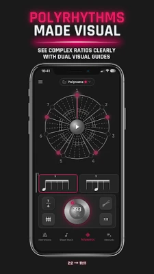 Ukiwa na Metronome Lab, utapata udhibiti kamili wa kasi, ukiweza kuweka tempo yoyote kutoka 1 hadi 500 BPM kwa urahisi usio na kifani. Tumia kipengele cha "Gonga Kasi" kulinganisha haraka mdundo wa wimbo wowote. Programu hii inasaidia sahihi zote za muda, kutoka 1/4 hadi 16/16, na aina zote za sehemu ndogo za noti. Kwa wanamuziki wanaotafuta changamoto zaidi, Metronome Lab inatoa uwezo wa kufanya mazoezi ya polyrhythms hadi uwiano wa 11:11, ikiwa na miongozo miwili ya kuonekana inayoonekana wazi kwa usahihi.