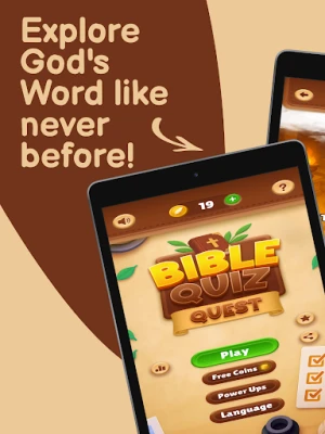 Gundua kina cha Biblia! Pima maarifa yako katika safari ya kusisimua kutoka Mwanzo hadi Ufunuo. Cheza viwango 100, jibu maswali 2000+ kwa lugha 6. Ujuzi wako wa Maandiko ndiyo hazina.