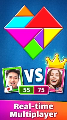 Mchezo huu unatoa njia mbalimbali za kucheza zinazolingana na kila mpenda mafumbo. Katika Njia ya Kawaida, unaweza kupanga vipande vya tangramu hatua kwa hatua bila shinikizo la saa, ukifurahia tu mchakato wa kukamilisha fumbo. Ikiwa unatafuta changamoto kubwa, Njia ya Mtaalam itapinda na kutesa ubongo wako kwa maumbo yake magumu ya tangramu yasiyoeleweka, yaliyoundwa mahususi kwa wachezaji wenye uzoefu. Na kwa wale wanaopenda ushindani, Njia ya Wachezaji Wengi inakuwezesha kupambana na wengine na kuonyesha uwezo wako wa kupanga polygramu. Zaidi ya hayo, unaweza kubinafsisha wasifu wako, kuwasha/kuzima sauti na muziki, kuchagua 'avatar' yako, na kufuatilia takwimu zako za mchezo, ikiwa ni pamoja na idadi ya michezo uliyocheza, michezo uliyoshinda, na asilimia yako ya ushindi.