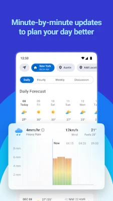 Je, wajiandaa kwa siku zijazo bila uhakika wa hali ya hewa? 1Weather inakuletea uhakika na utabiri sahihi kabisa, ukikuwezesha kupanga maisha yako kikamilifu. Pata taarifa za kina kuhusu mvua kwa saa 48 zijazo, zikibainisha kila dakika ili usishangazwe na mabadiliko ya ghafla. Aidha, jipange kwa wiki nzima na utabiri wetu wa hali ya hewa wa siku 10, ukikupa mtazamo mpana wa mienendo ya anga na kukusaidia kufanya maamuzi bora kwa kila tukio.